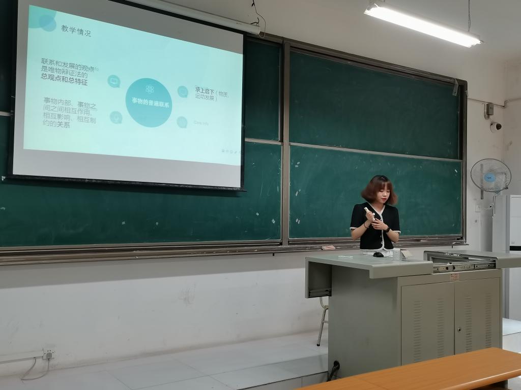 作为本学期马克思主义基本原理专业课程的新教师,徐梦笛从学情、教学目标、教学重难点、教学手段、教学过程及板书等方面进行了详细阐述。在教法的处理上,徐老师充分考虑学生学情整合教材,教学案例新颖,充分体现出了学科特点。教学手段上,徐教师围绕高效课堂,紧扣教学目标,使用多种教学方法,层层深入,激发学生学习兴趣。