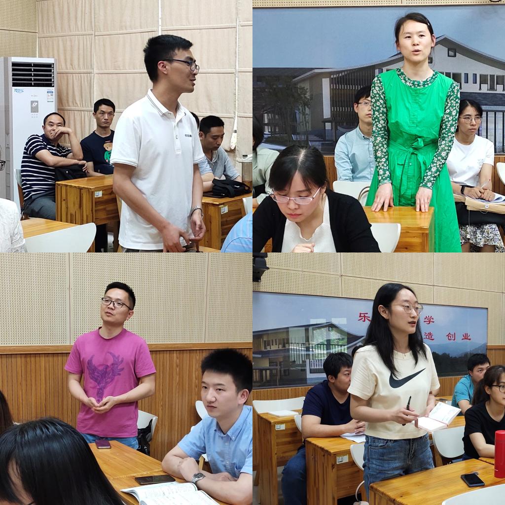 课后,杨老师与在座的各位老师进行了交流。陈龙灿老师谈到:“杨佳义老师板书排版整洁,美观明了,教学内容设置合理有序,旋转磁场用三相交流电不同通电时刻的磁场判定展示,非常的直观清晰,容易理解”。王瑞芳老师指出:“杨佳义老师设计了应用导入、设疑、讲解分析、练习巩固和最后的总结思考,教学内容阐述循序渐进、层层深入逻辑清晰,PPT设计美观,应用很多的多媒体动画图示辅助分析,并结合板书设计,重点突出,利于学生掌握理解”。新晋教师杨淞淇老师也谈到:“杨老师在结构思路上的承前启后,前有复习题,后有练习既课后总结思考,思路清晰,节奏把握较好,值得好好学习”。蔡勇军老师在谈及自己听课感受时说到:“我以一个完全不懂电机的学生身份在聆听这节课,杨老师从旋转磁场到电机工作原理,过程清晰、层层递进,自己仿佛回到了学生时代,聆听了一节美妙的电机课”。