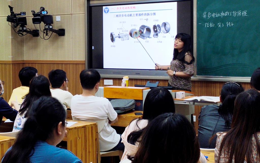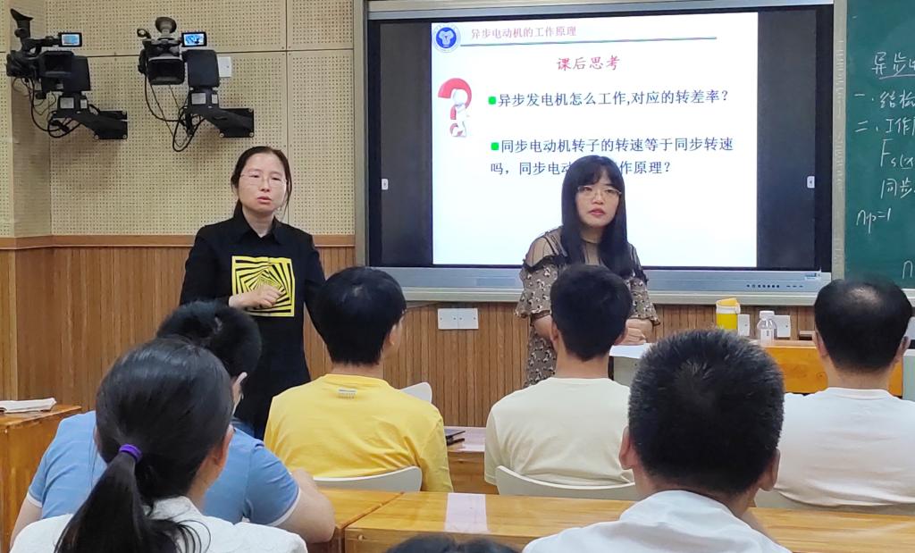 杨佳义老师分享的主题是“异步电动机的工作原理”。教学内容以日常家用电器中异步电动机的应用导入,创设学习情境,提升学习兴趣,拆解展示异步电动机的基本结构,以简化的结构模型辅助分析,说明异步电动机空间磁场的分析方法,带动引导学生自主分析三相异步电动机的旋转磁场,积极营造和谐融洽的教学氛围,用直观易懂的方式让学生理解异步电动机的运行原理。