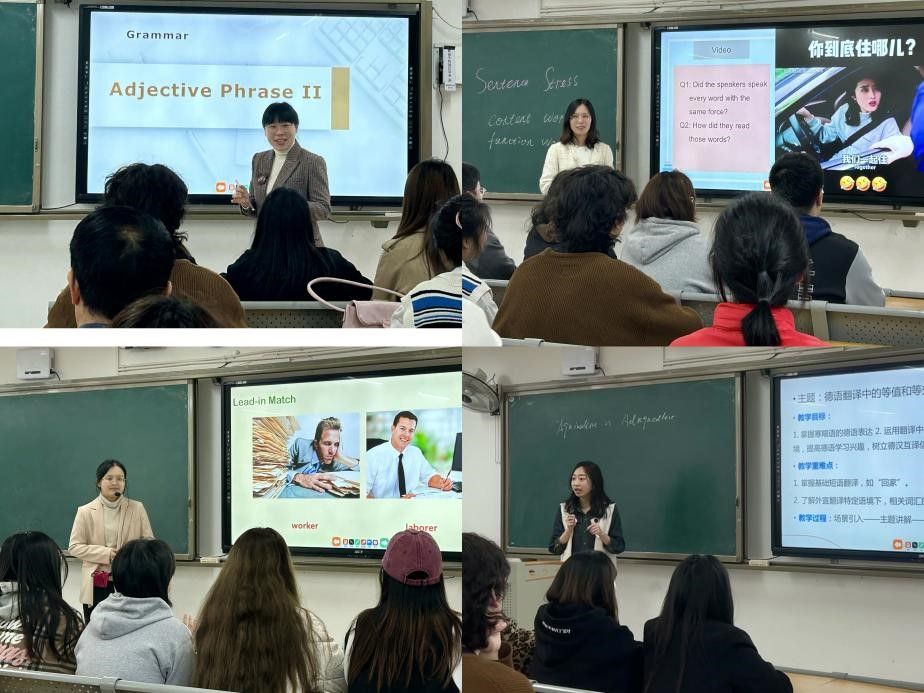 他们围绕专业知识,主题鲜明,结合文字、图片、视频等形式,将课堂内容与时政热点、课程思政结合起来,讲解细致精彩,课程设置精妙,教学风格活泼,教学互动合理,个人教学特色突出,极好地展现了外国语学院青年教师的能力与风采,给现场观众及评委留下了深刻的印象。