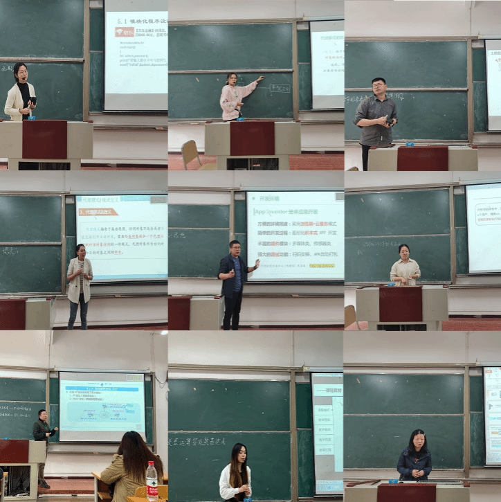 为进一步加强青年教师的教学基本功,提高教学水平和素质,4月26日14:30大数据与计算机科学学院计算机科学与技术教研室在7201举行了一场青年教师讲课比赛。本次比赛共有4位学院资深教师评委和来自计科教研室的9名青年教师参加,他们分别针对《程序设计基础》、《软件设计模式》、《Java程序设计》、《智能手机互联网程序设计》、《信息安全技术》、《计算机网络》、《C语言程序设计》等课程进行了展示。每位选手都有自己独特的教学风格和教学方法,给我们带来了不同的视听体验。