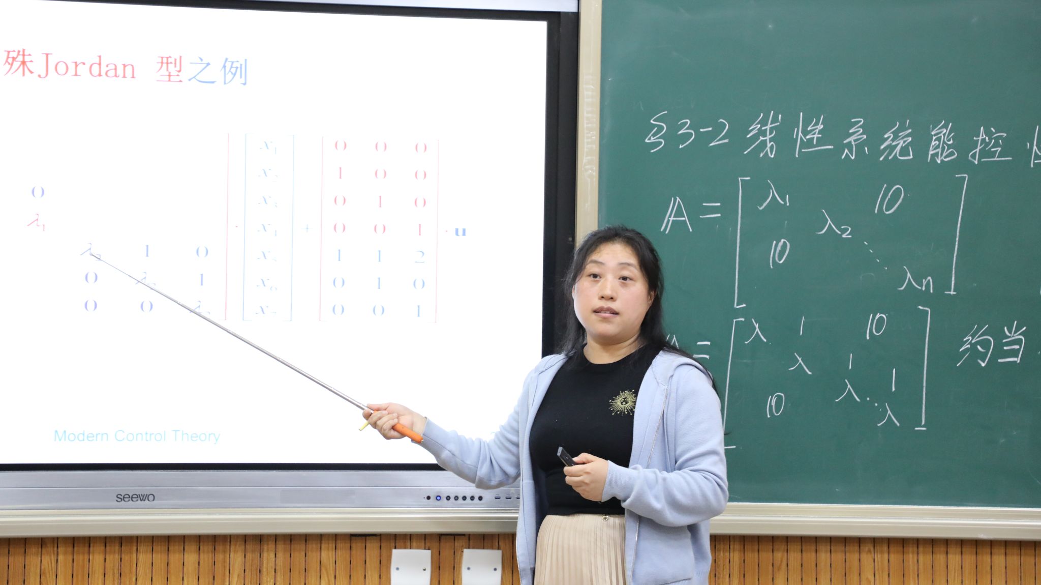 马冬梅老师本次示范课的主题为“线性系统能控性判据”。教学内容以新冠疫情在不同阶段的防控状态作为切入,讲解能控定义,及两种判定依据,对不同判据都进行了实例说明,带动学生自主思考,提取判定特征,描述其基本内涵。整节示范课程,马冬梅老师激情饱满,理论实例环环相扣,教学过程结构清晰。教学内容重难点突出,逻辑条理清晰,带领学生掌握了线性系统能控性判据相关知识点。