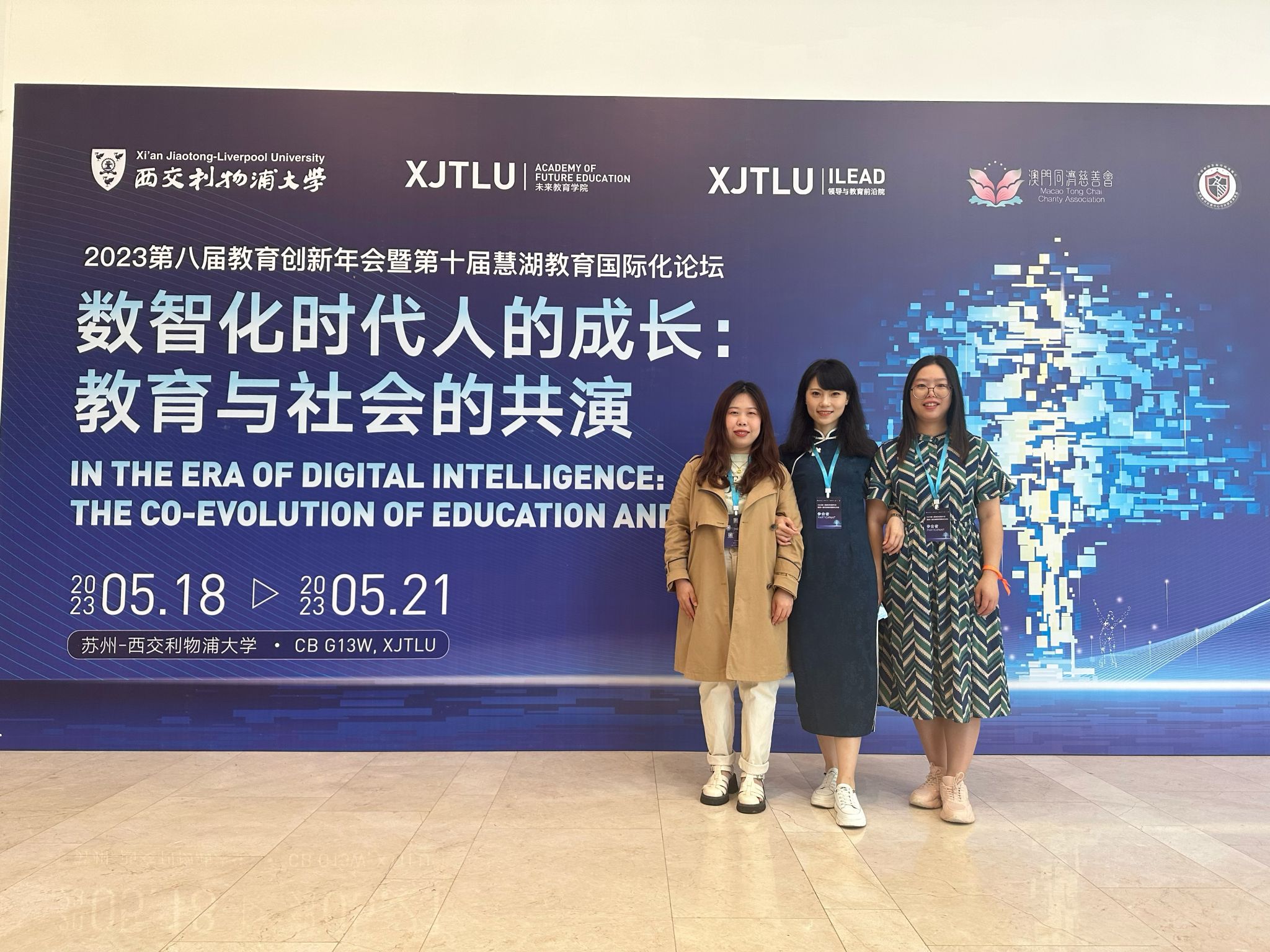 为探索数智化时代的教育发展新模式,推动高等教育改革与创新,2023年5月18日至21日,第八届教育创新年会暨第十届慧湖教育国际化论坛在西交利物浦大学隆重举行。信息安全学院副院长王宁、物联网教研室主任郑慧娟、信息基础教研室主任周小艳参加了本次会议学习交流。