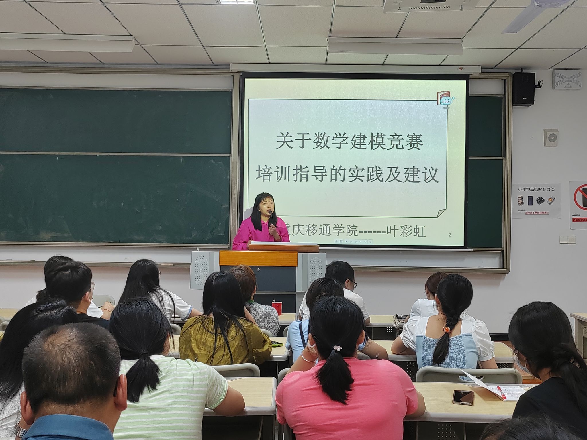 为发展和提升学生运用数学方法解决实际问题和交叉学科问题的能力及论文撰写和文献检索能力,开阔学生视野,提升团队合作意识,激发创新潜能。公共基础教学部数学教研室委派陈玲老师、叶彩虹老师、张敏老师参加重庆市工业与应用数学学会第9届年会培训学习,并在6月7日晚仁者楼307教室组织参培教师对培训内容进行教学交流汇报,旨在通过科学部署,周密安排,统筹推进2023年全国大学生数学建模竞赛(下简称竞赛)赛前辅导和参赛准备工作。数学教研室张敏、叶彩虹老师先后进行了竞赛有关内容的分享。
