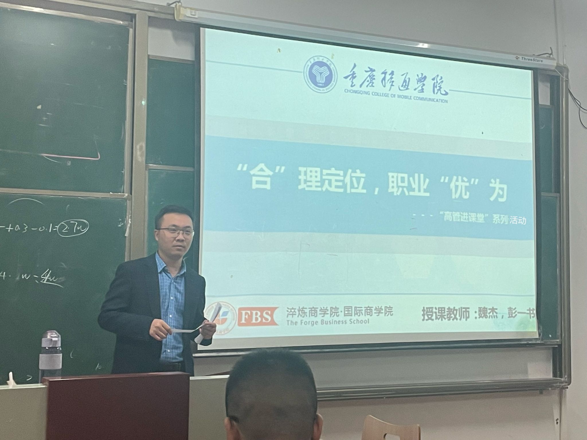 本次课邀请的企业嘉宾是合优网创始人、合川区政协委员魏杰先生。由于这门课面向的是财务管理专业大四的同学,魏总便从“毕业前VS毕业后”为引入话题,以自身从大学毕业找工作到自己创业生涯轨迹变化、自我认知变化等方面与同学们进行分享交流,从财务管理专业角度引导同学们认清形势、把握大势、突出优势,并通过同学们身边学长的实例指导同学们如何做好当下、把握未来。