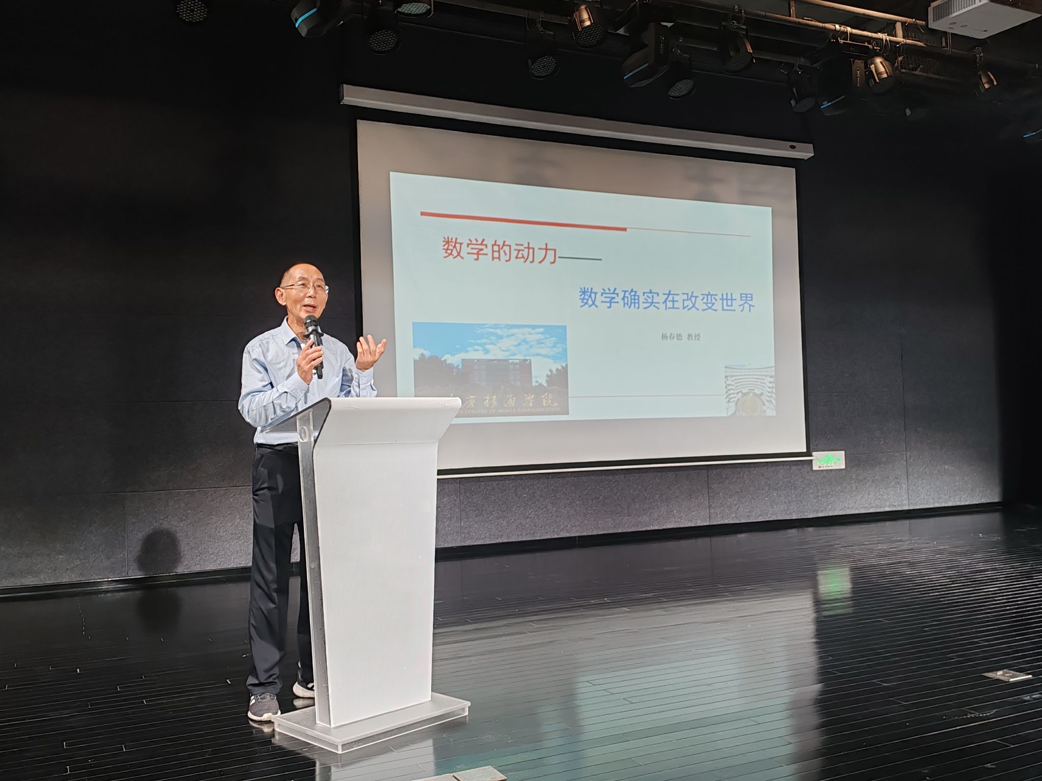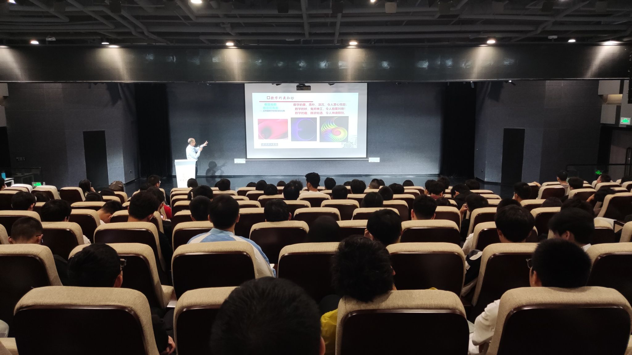 接着,杨教授带领同学们认识到数学作为其他学科基础的重要地位。在航空航天、国防安全、人工智能、金融等诸多领域,数学已成为不可或缺的关键支撑。他还讲到,数学与实际生活紧密相连,犹如一座坚实的桥梁连接着理论与实际,杨教授通过呈现多个案例,展示了数学在生活中的具体运用,例如运用“海滩占位”案例,教导同学们如何利用数学“做生意”,此外,去医院看CT、地球勘探、利用图像处理帮助警察破案等也都离不开数学的支撑。而后,杨教授从国家层面高度重视数学的角度出发,详细介绍了上级印发的相关文件以及设立的多个国家应用数学中心,让同学们切实感受到国家对于数学这一基础学科的重视以及其散发出的巨大魅力与深远影响力。最后,杨教授以“爱”字为出发点,呼吁同学们在大学学习生涯中做一个“有心人”,热爱数学,并学好数学,他强调“读书无捷径,勤奋是根本”,倡导“学中用,干中学”。