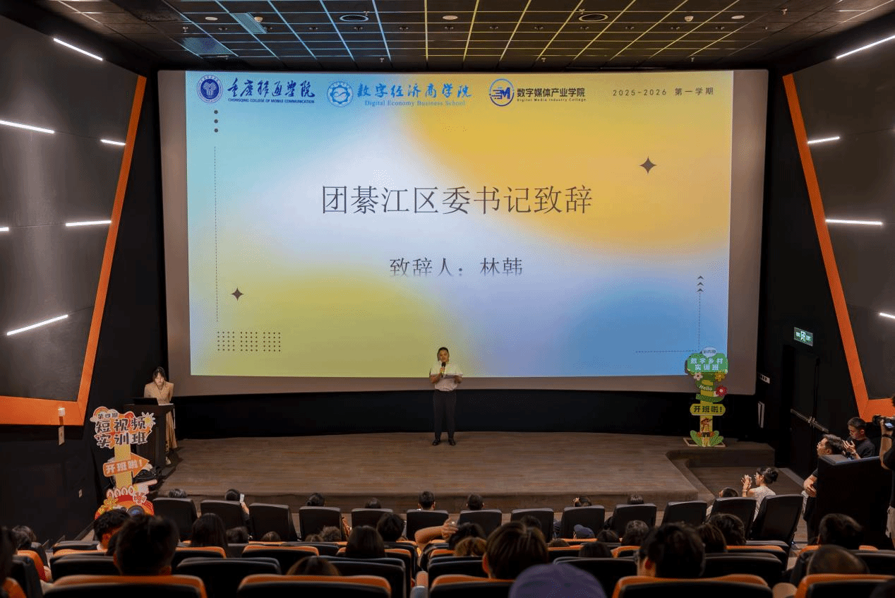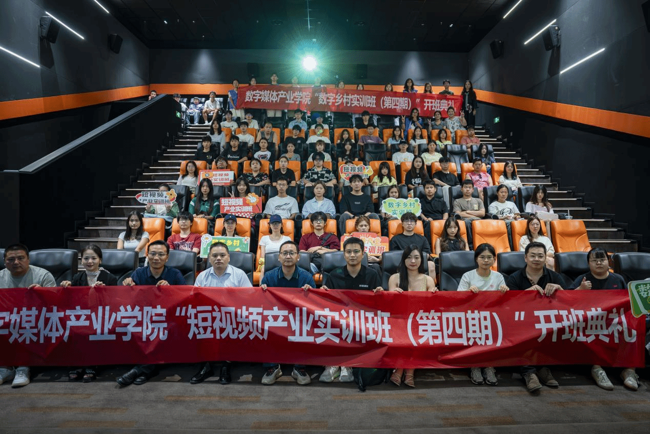 2025年10月11日下午16:00,数字媒体产业学院第四期实训班开班典礼在电影院4号厅隆重举行。团綦江区委书记林韩、重庆移通学院数字经济商学院兼数字媒体产业学院副院长范保珠、奇妙村(重庆)农业有限公司董事长兼重庆市綦江区足球协会会长彭纯亮、抖音巨量引擎认证实战导师罗凌、重庆双喜科技负责人刘杨靖、重庆双喜科技电商事业部总经理文双及数字媒体产业学院全体教师与第四期实训班共计100名学员齐聚一堂,共同见证本期实训教学的正式启航。