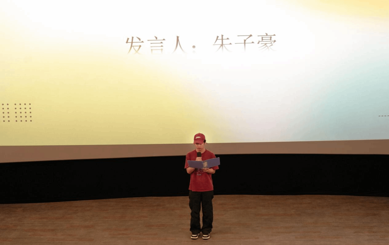 活动现场,万乙豆老师和朱思琪老师为学员代表颁发录取通知书。鲜红的证书不仅是学员们进入实训班的“入场券”,更承载着学院与企业对大家的殷切期许。学员代表朱子豪上台发言,他分享了自己报名乡村实训班的初衷——用镜头记录乡村之美、助力乡村发展。