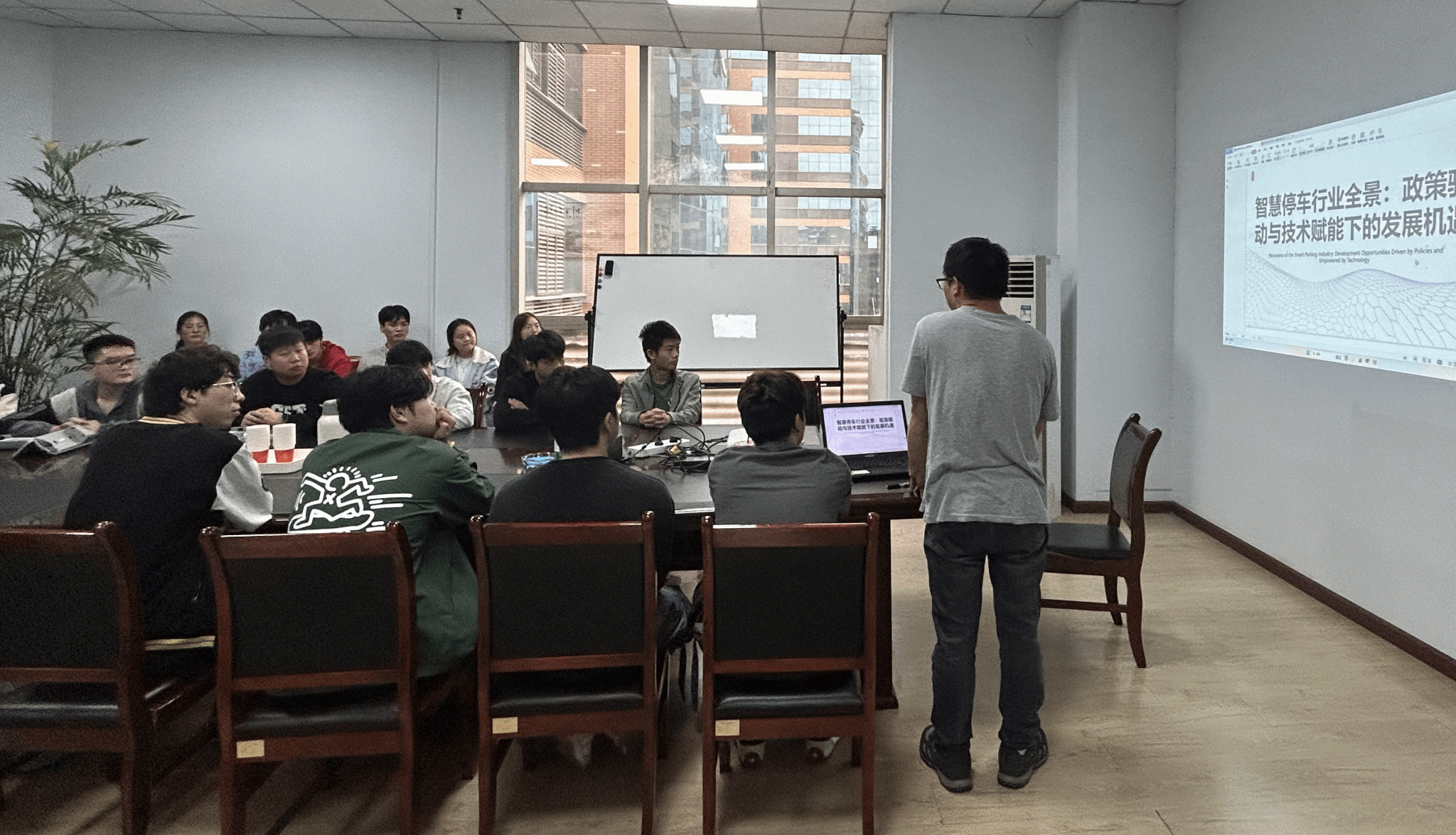 实习首日,公司总经理与技术负责人对师生一行的到来表示热烈欢迎,系统介绍了企业发展历程、智慧停车行业现状及核心技术产品,帮助学生构建对行业整体认知与企业业务布局的初步理解。