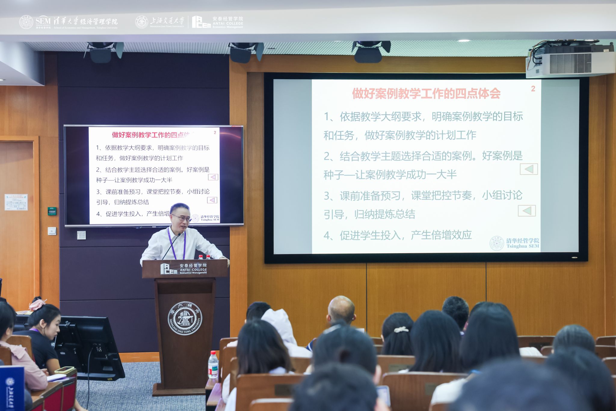 10月17日,清华大学郝洁教授从哈佛案例教学法的课堂实践角度,系统解析了哈佛案例教学法的核心理念与课堂组织技巧;对外经济贸易大学邢小强教授则分享了“研究驱动的教学案例开发模式”,强调以严谨的学术研究为基础推进教学案例的开发。下午,清华大学姜朋教授围绕商业伦理类案例,从理论关涉与课堂设问出发,讲授了在案例开发中的法律和伦理方面的边界问题;上海科技大学毛基业教授则系统阐述了案例开发的理论价值,并结合自身从教经历,向青年教师分享了教学准备、案例应用与效果评估等方面的宝贵经验。