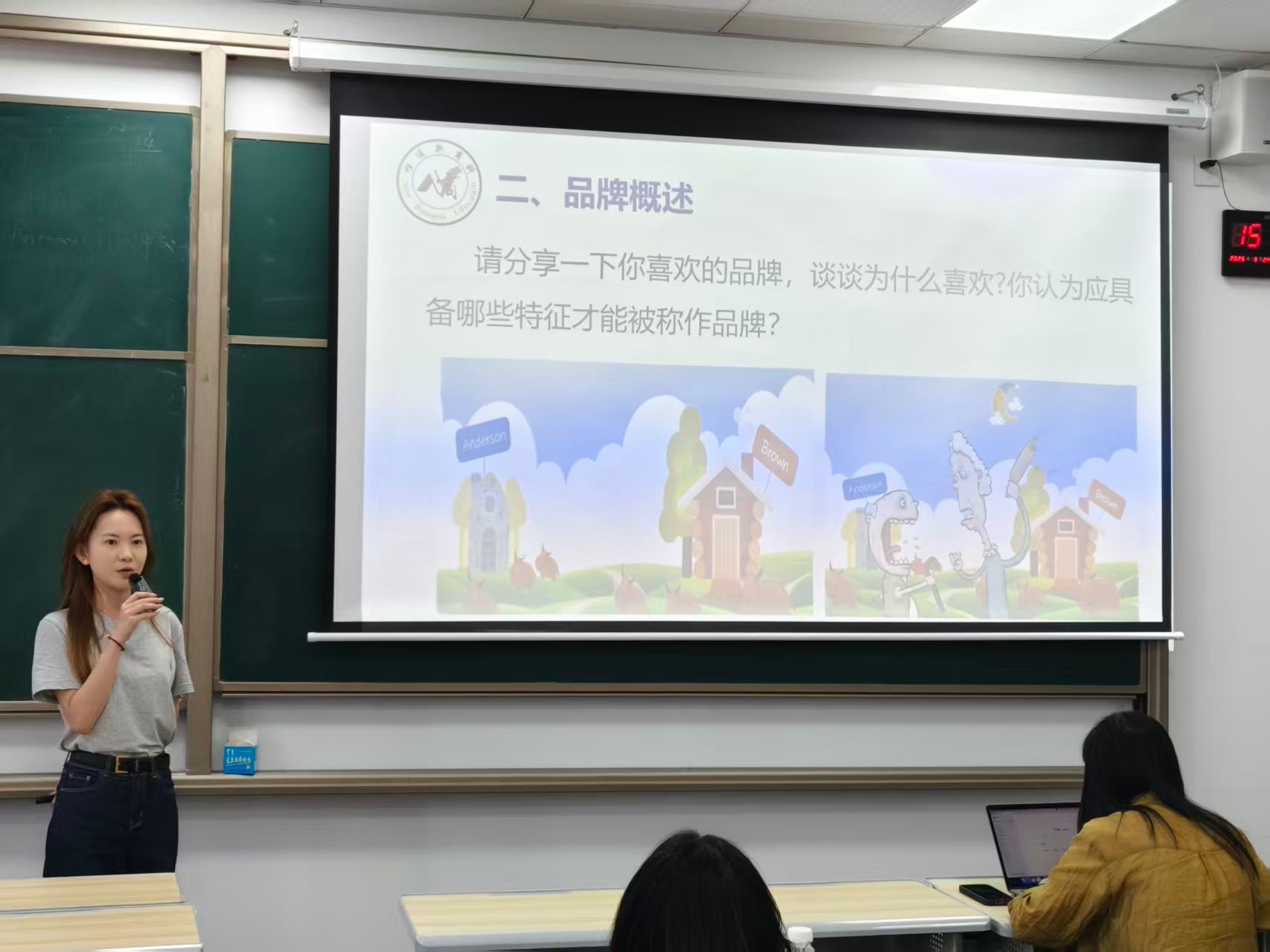 李昀老师讲解品牌含义、功能及与营销的关系,强调品牌通过差异化与信任创造价值,营销则强化品牌认知与市场拓展。
