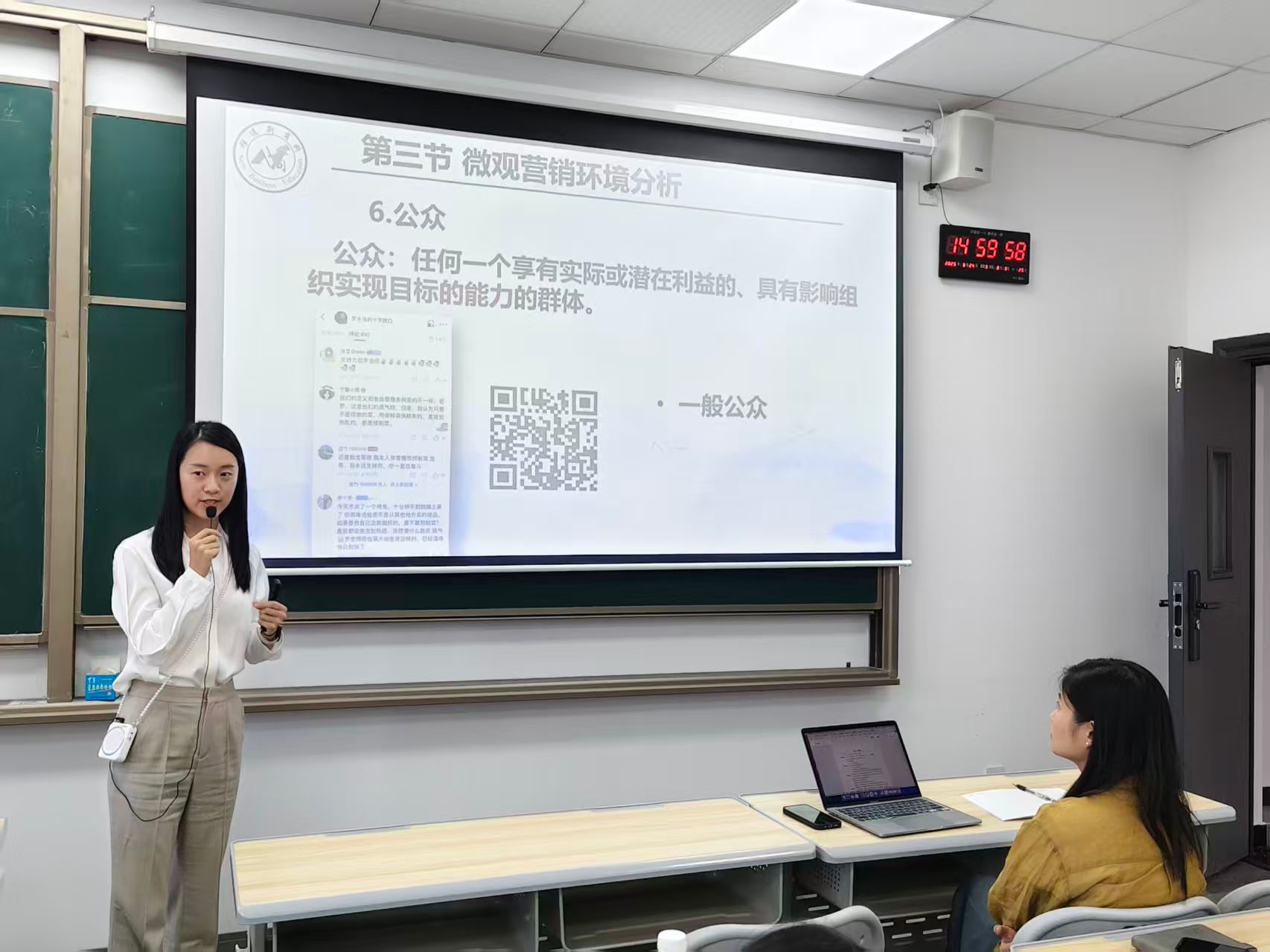 程佳妮老师以“罗永浩大战西贝”事件为例,系统讲解微观营销环境中“公众”的七类群体及其对企业品牌与营销的影响,强调舆情应对与公众关系管理的重要性。