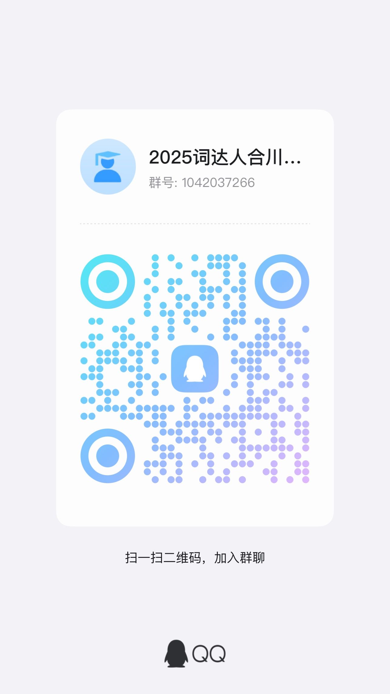 报名时间为即日起至2025年3月31日。参赛选手务必先关注微信公众号“词达人”,进入“学生端”,使用右上角的“扫一扫”功能,扫描底部的本校专属报名二维码。进入报名界面后,参赛选手须如实填写本人姓名、学号、组别等信息,确认提交完成报名。同时加入“2025词达人”QQ群(合川校区群号1042037266,綦江校区群号1037963148),并填写在线报名表格。请注意:填报信息与竞赛成绩、获奖证书挂钩,如果填报错误或经核查不实,将可能被取消竞赛成绩。